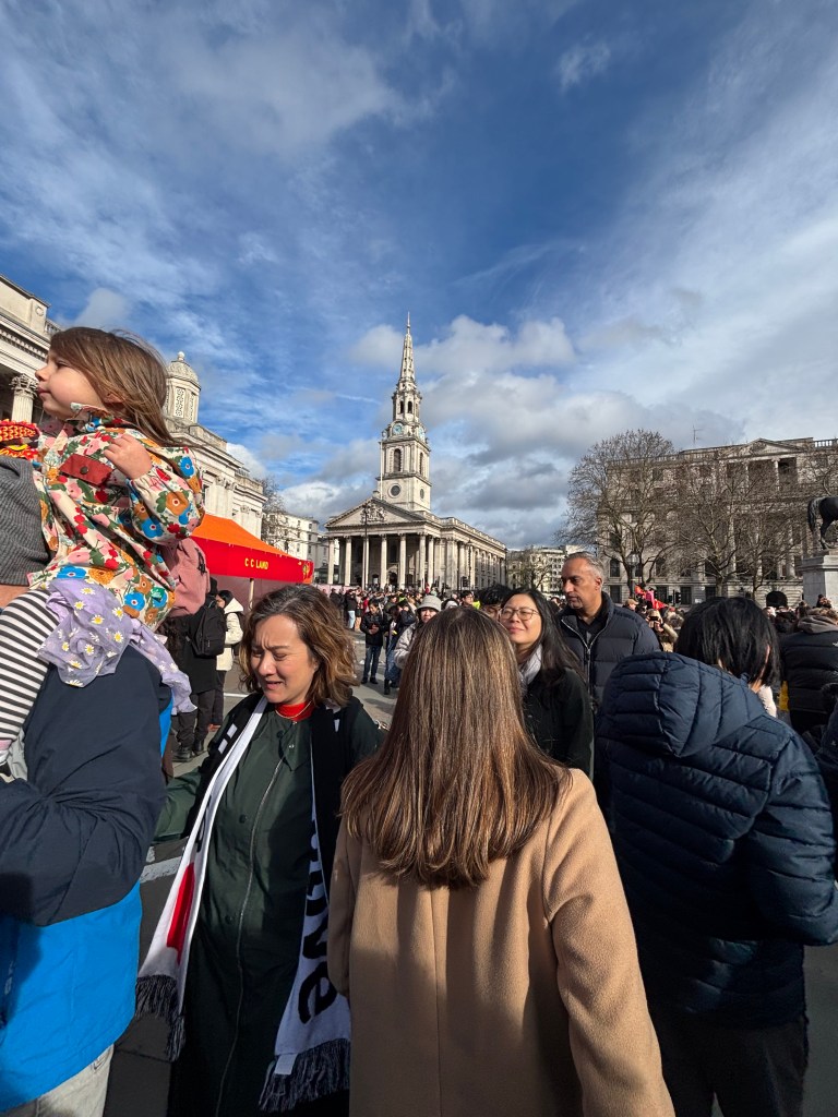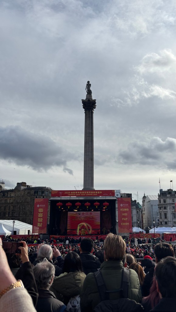 In order to make it to the West End, we passed through Trafalgar Square where there was a massive Lunar New Year Festival – big spectacle, street food stalls, a massive dragon (no wings, remember) on stage, and beautiful music.