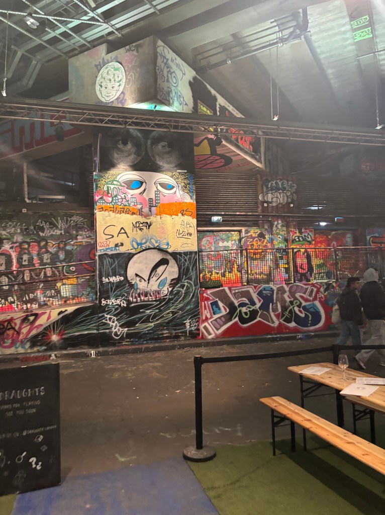 The matinee performance allowed us an entire evening to run around the city! First, We trekked over Waterloo bridge (in the tune of ABBA), to get to ‘Draughts’ a boardgame bar. Hello to the London Eye, Walkie Talkie, the Shard, the Cheesegrater, and the Scalpel. At Draughts, located in graffiti tunnel,2 you pay a base rate for access to library shelves full of games and can also purchase food and drink.