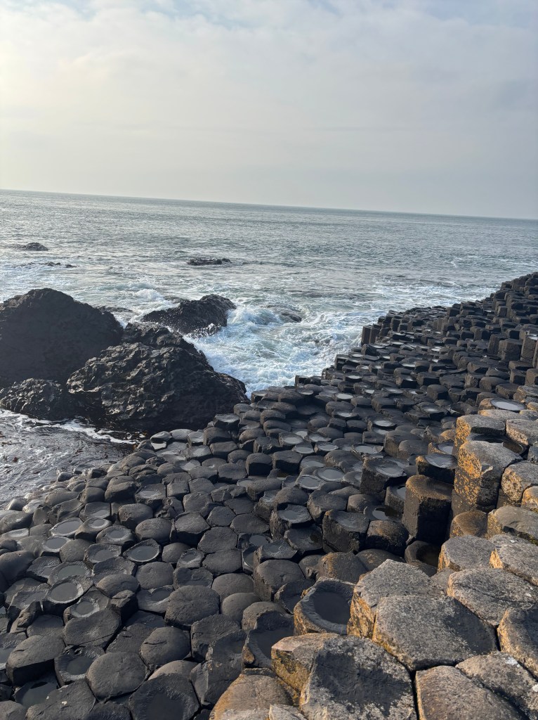 Giant’s Causeway was wayyyy cooler than I expected, too. We had a good two hours to hang out, so we took a short hike around the cliffs, then headed down to the beach and rocky coastline. The basalt columns looked like slightly unorganized honeycomb. I enjoyed looking at the small depressions in the center of many of the stones from the footsteps over hundreds of years.