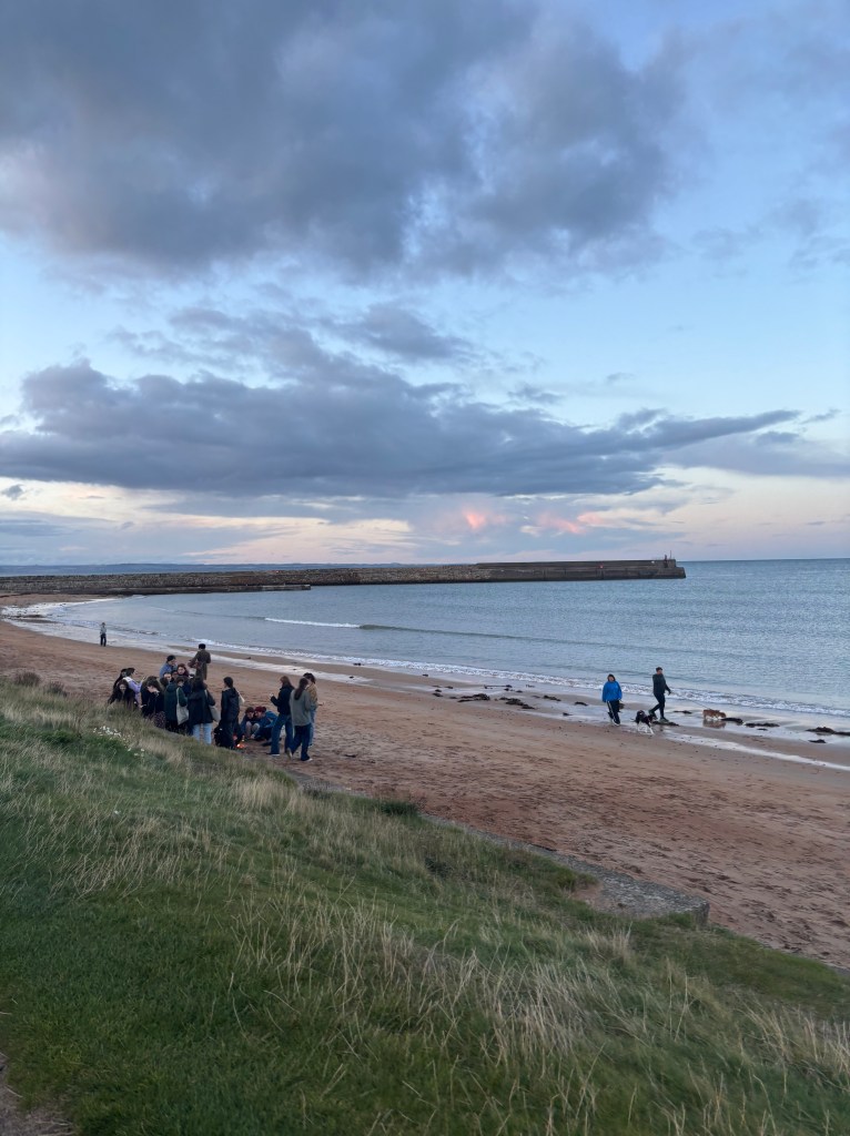 Speaking of beach activities… this week marked my first sea dip! David, Lucas, and I moseyed down to Castle Sands. According to my scientific source,1 the water temperature over the past week has been between 12-13 degrees Celsius (53-55 degrees Fahrenheit). Lucas and I managed to enjoy a 33-minute swim 😍❗❗ (our peers are impressed – you should be too).