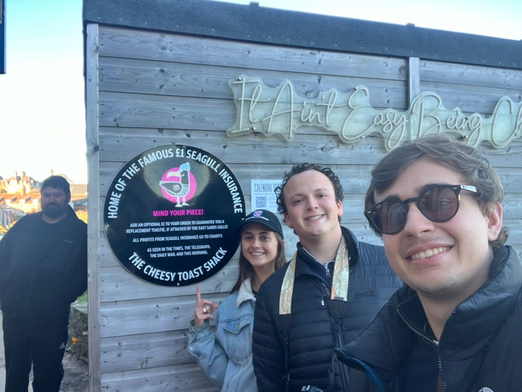 Lucas, Henrique, Hanno, Charles, and I enjoyed the Cheesy Toastie Shack. Their £1 ‘Seagull insurance’ always gives us a good laugh.