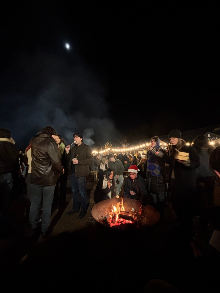 A new find in a small town sparks a unique thrill.. just when you think you’ve discovered every spot or mapped out each road, a ~hidden gem~ pops up! This week’s small town find (well, at least for us first-time students) was the Balgrove Christmas market! The Bobby Mobile unloaded a clown car of students in a muddy, grassy parking lot – it really felt like a corn maze/fall festival lot in the Northeast.. or the Lancaster, MA Soccerween lots after a big tournament and rain. I sampled cauliflower crisps (better than anticipated), local rum (very smooth), imported South African wines (the UK is obsessed, rightfully so), and loaded churros. The market featured a wide selection of meats, cheeses, Christmas gifts, baked goods, steak barn, spirits, pig viewing, a live band, fire pits, food trucks, and artisan crafts.