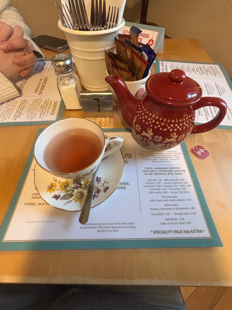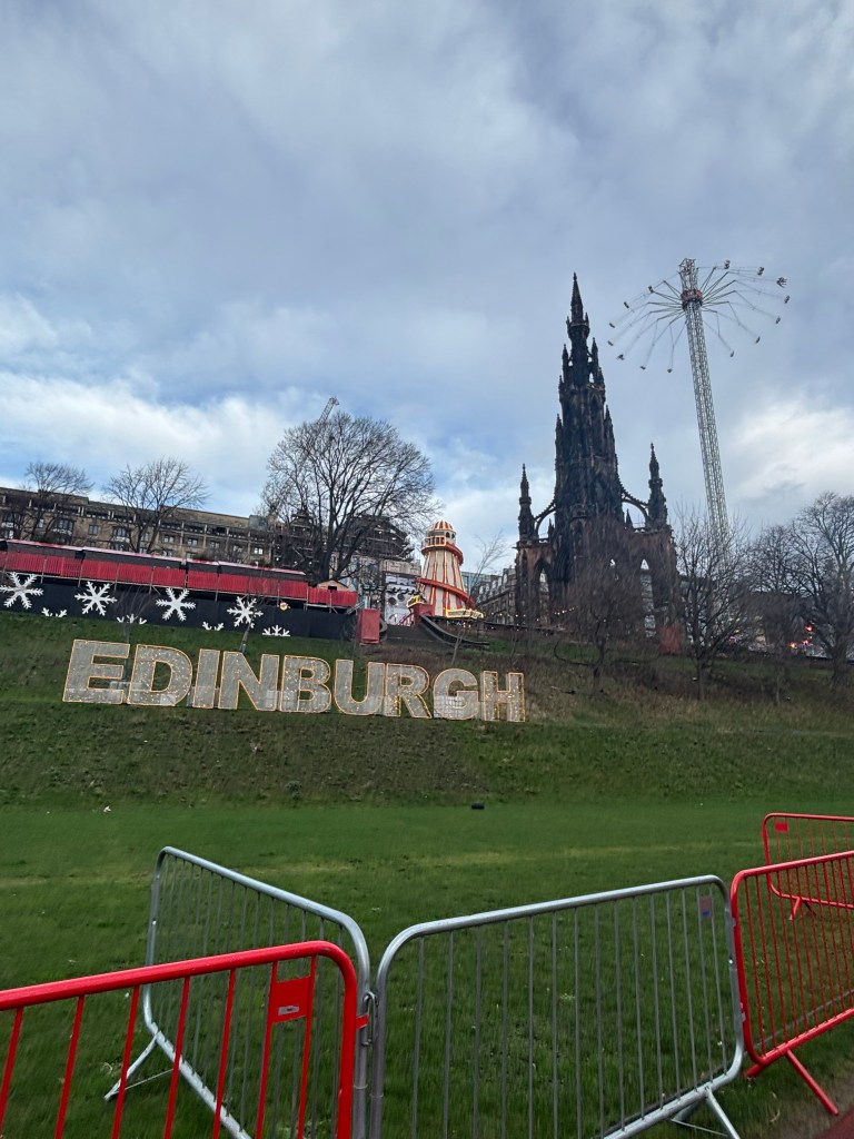 Back to business, about a week after her visit to St Andrews, I had the pleasure to pop down to Edinburgh and visit in her neck of the woods. Shoutout David for the Leuchars drop off – I enjoyed the scenic train ride down the coast. We braved the wind tunnels and meandered around the Edinburgh Christmas markets. Luckily, we went in the morning of a weekday, so the crowds weren’t too hectic. That said, by the time we circled back around 12:30, the place was packed. Go early! Go on the weekdays!