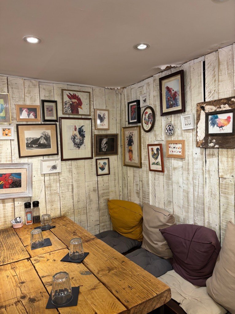 Right: Interior of the Painted Rooster