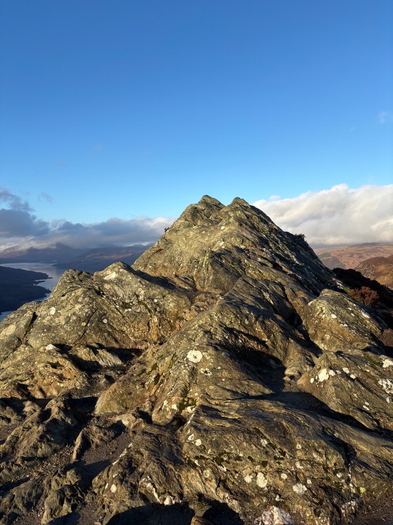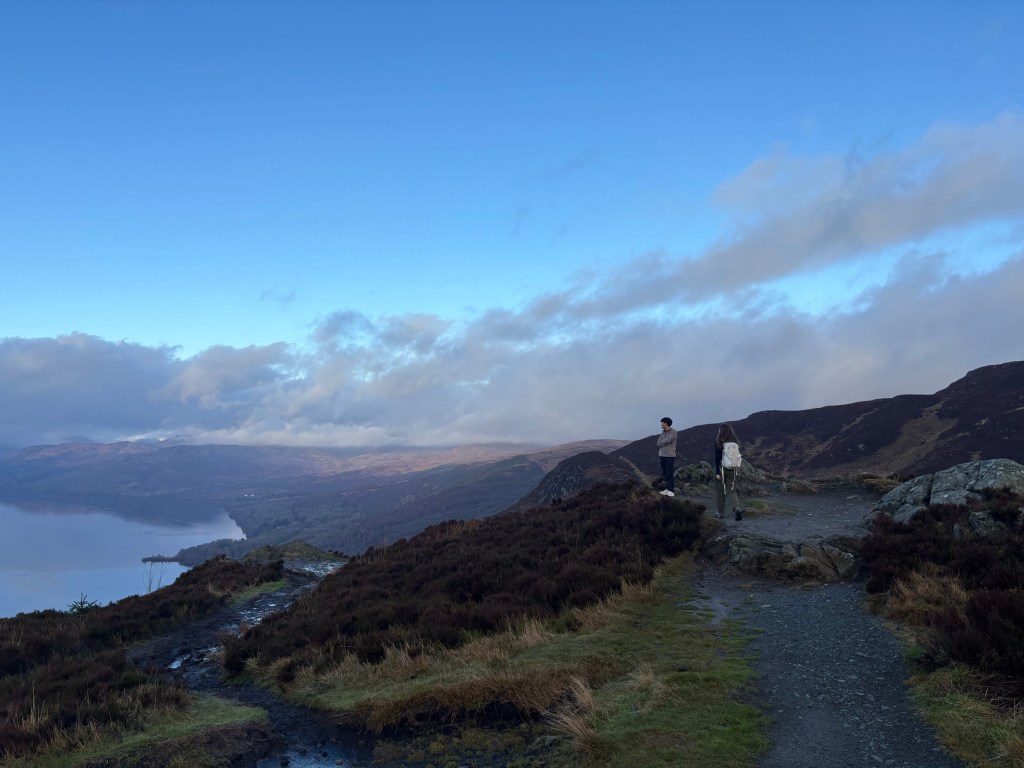 The semester would not have been complete without another hiking expedition. Julia, David, and I set out in the early morning to tackle Ben A’an. This 320 meter ascent can be done in 45-60 minutes at a moderate pace, making it an ideal sunrise hike destination. We didn’t want to get up at 5am to drive two hours, so we ‘summited’ around 10:45am – which is practically the sun’s highest point considering the average sunset looms around 3:30pm.