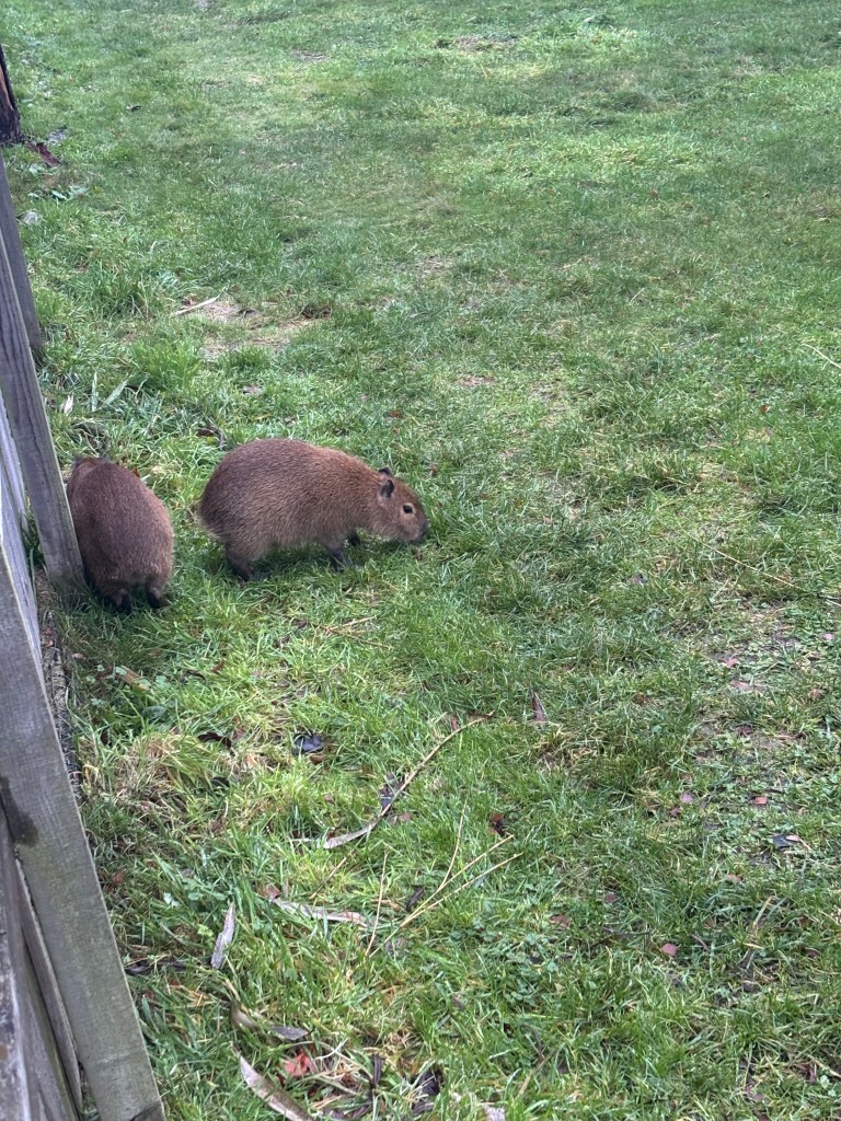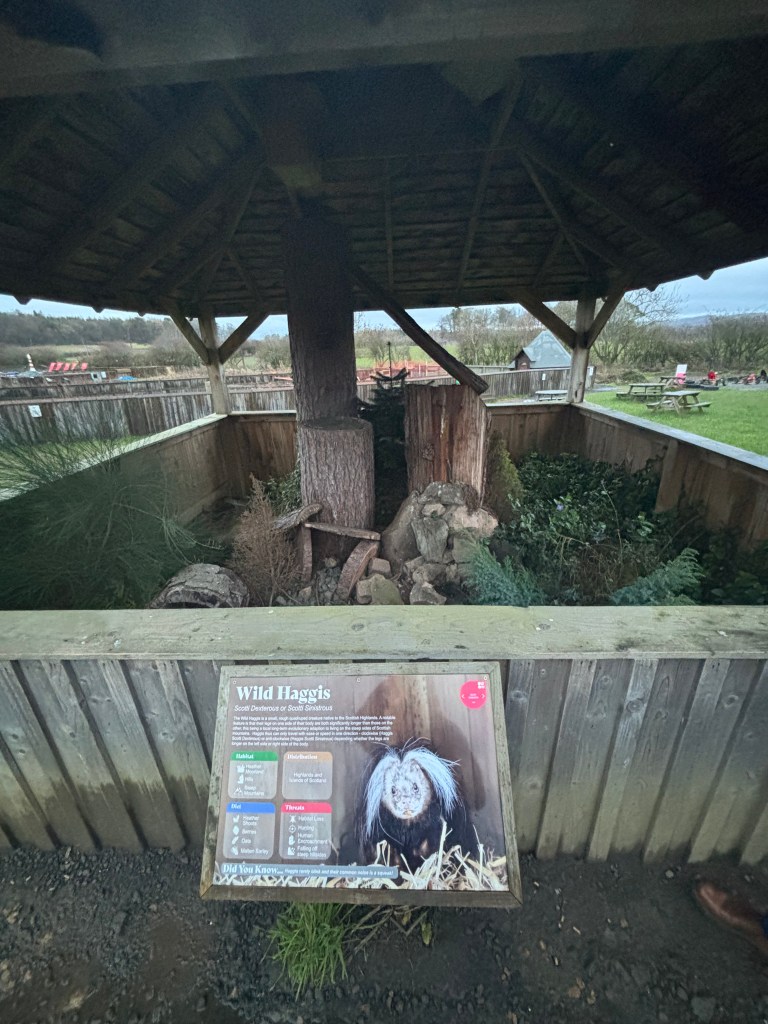 We said hello to reindeer, normal deer, Moose, cows, stags, falcons, owls, cows, capybara, ants, and the world-famous haggis.5 Once again, the deer center décor did not fail to amaze me. They displayed some sort of plane alongside several tractors painted like cows.
