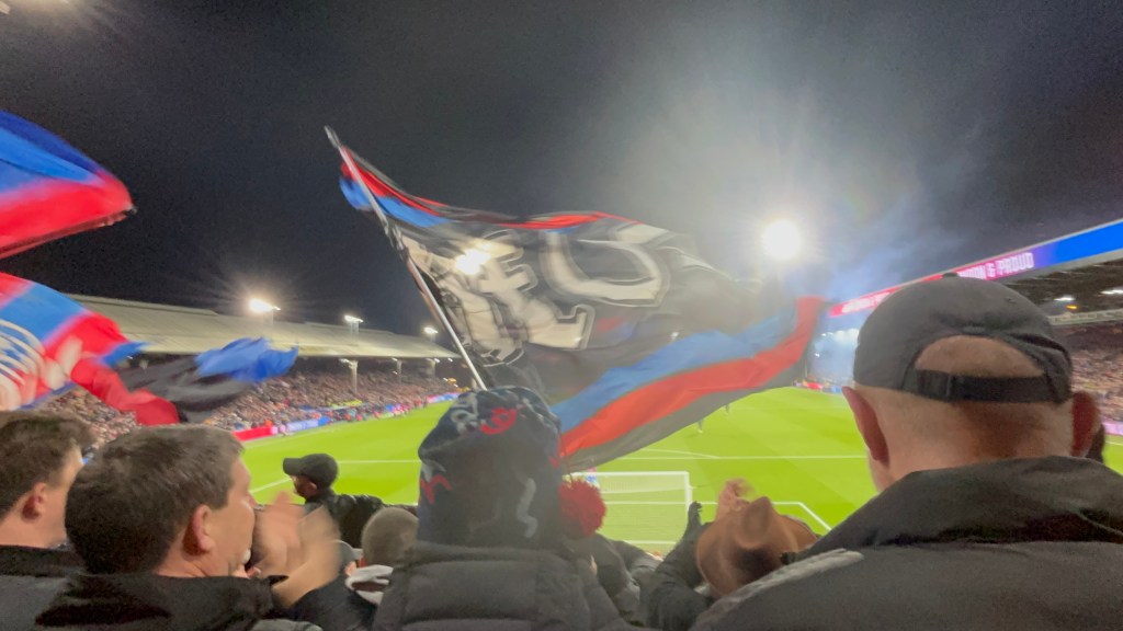 Some CPFC cheers included:“we’re the pride of South London, South London’s number one, you know its trueeee, the red and blueeee” —- my personal favorite: “when I was a young boy my father said to me, listen up son, we’re CPFC. Here, we are, you’ll know us by our noise, the pride of South London, the famous Palace boys.” The goal song was Boom Boom Boom by the Vengaboys – a welcome vibe shift.